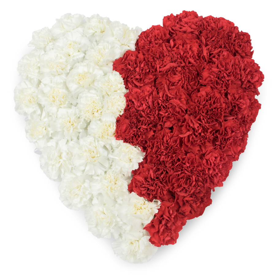Embrace the charm and elegance of our Heart of Mixed Carnations bouquet. This beautiful arrangement features a vibrant mix of white and red carnations, thoughtfully arranged in a heart shape to highlight the beauty and uniqueness of each bloom.
